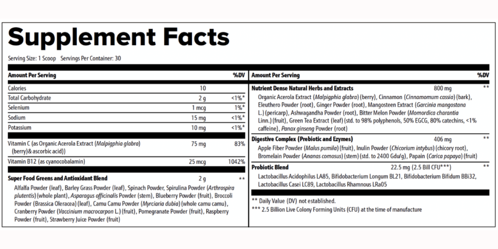 Here are some of the superfoods and herbs found in each scoop: